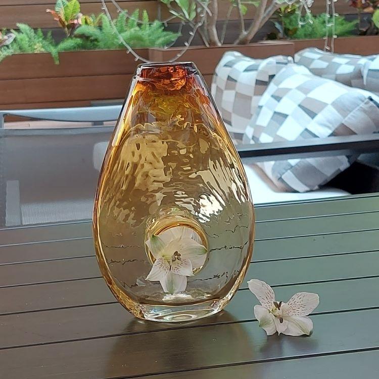 該技術允許創建具有內部空腔的物體,當大師在壓力下上升時,他的嘴吹出的熱空氣會迫使玻璃塊膨脹。 該技術可用於鍛造花瓶、中心裝飾品、眼鏡、杯子和枝形吊燈。