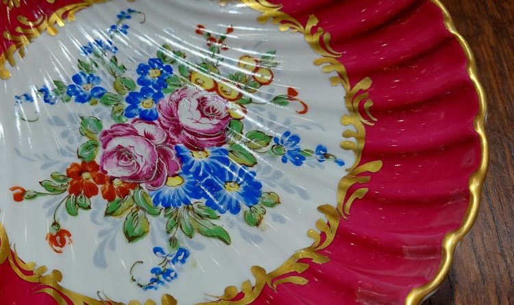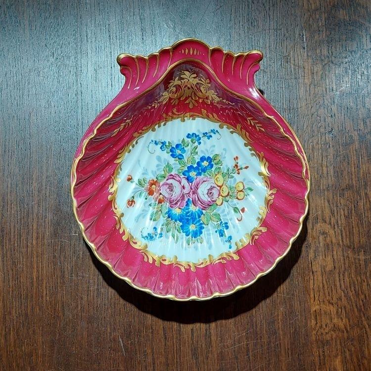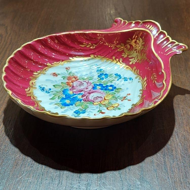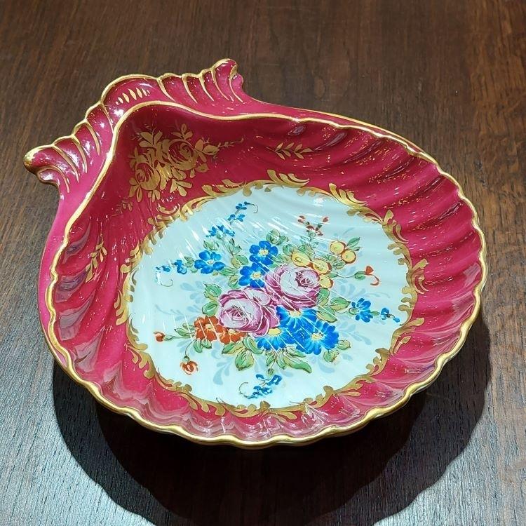 法國古董燙金/手繪陶瓷扇貝型裝飾碟