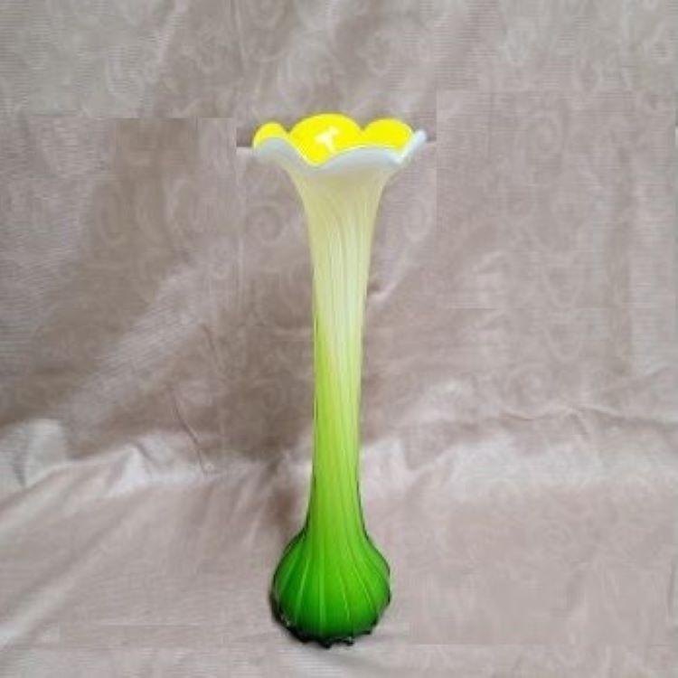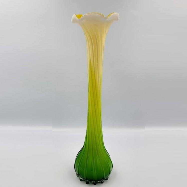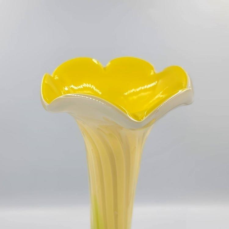 意大利Murano花朵形狀手工黃綠玻璃花瓶