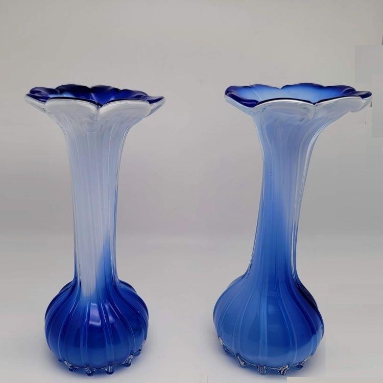 意大利Murano花朵藍白玻璃花瓶(一雙)