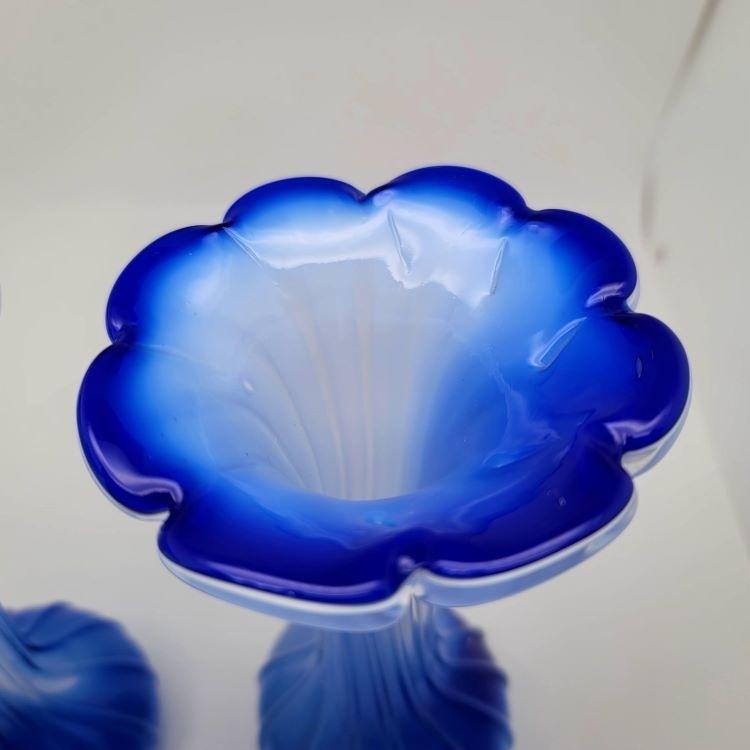 意大利Murano花朵形狀手工藍白玻璃花瓶