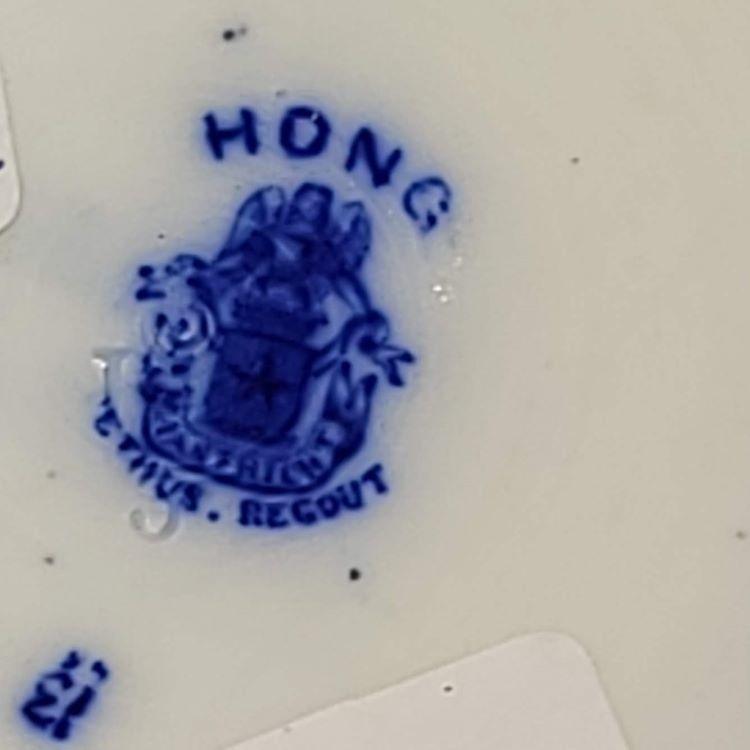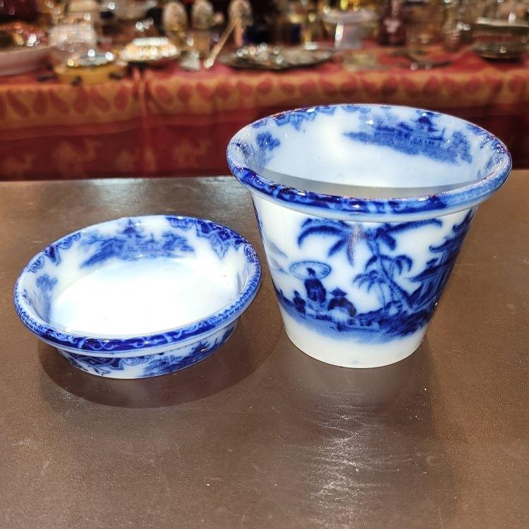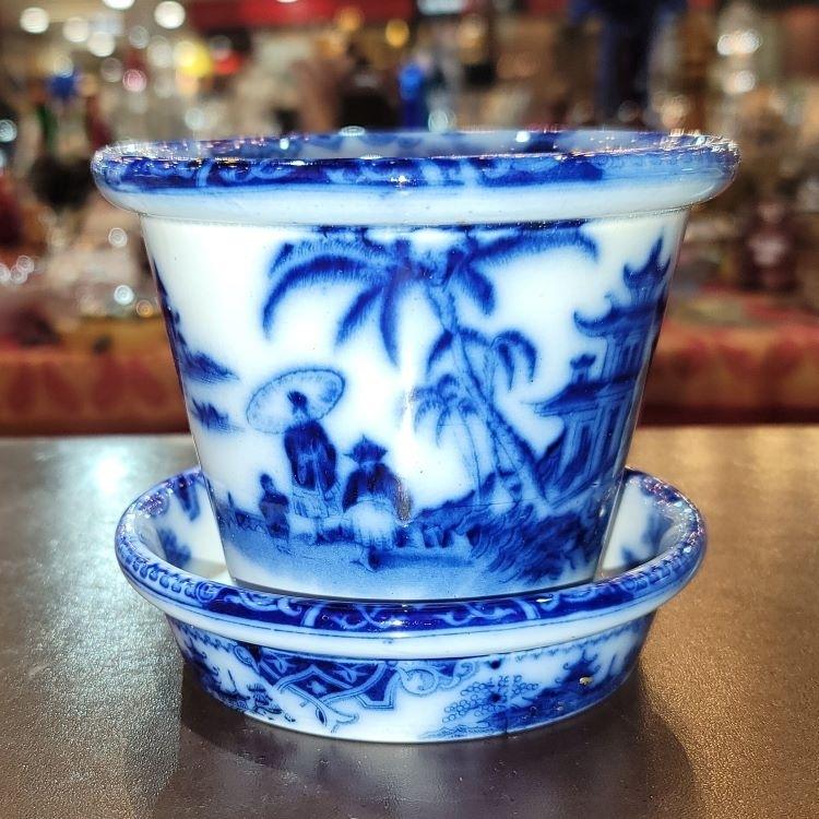 Antique blue/white flower pot in Chinese motifs by Petrus Regout – Honc, Holland