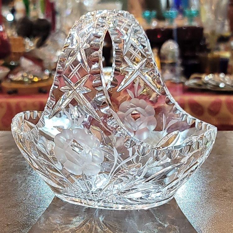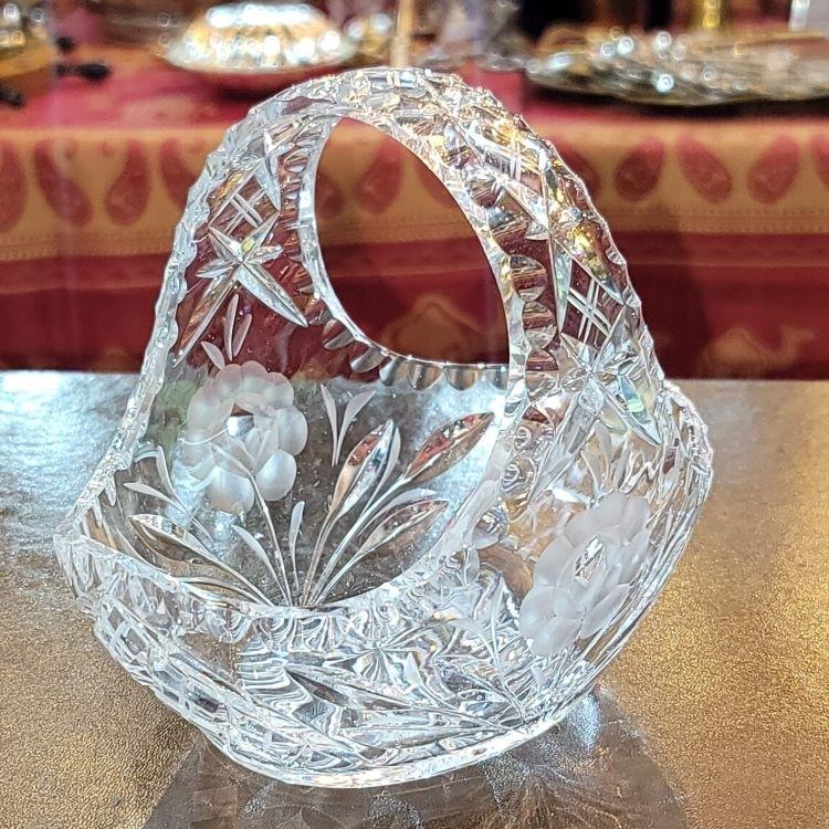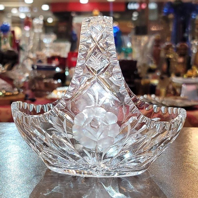 捷克 手工雕刻水晶花籃